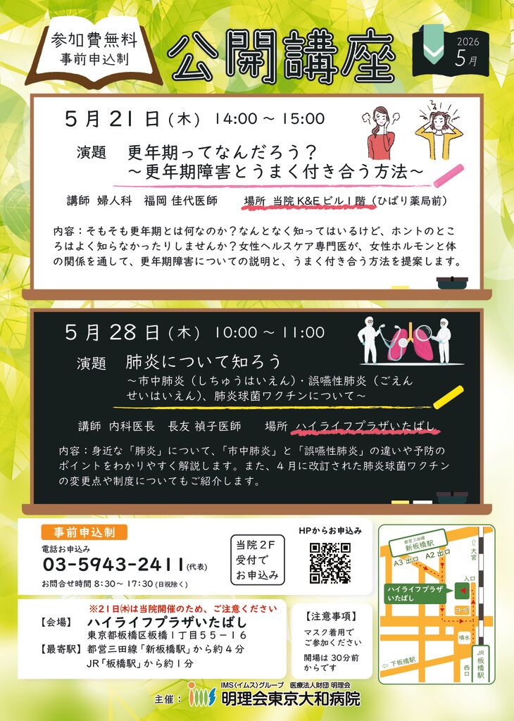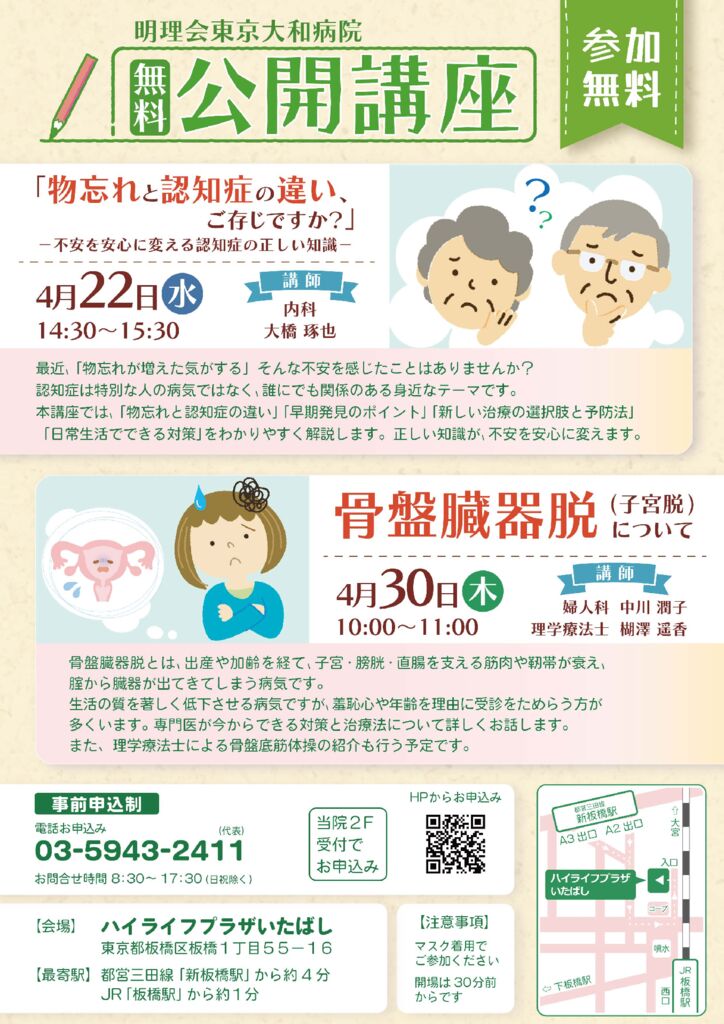 〈開催日時〉 14:00~15:00(開場30分前)明理会東京大和病院 K&Eビル1階