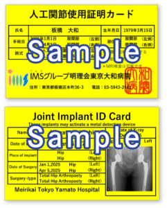 このたび当院ではご希望の方に【人工関節使用証明カード】の発行を開始しました。